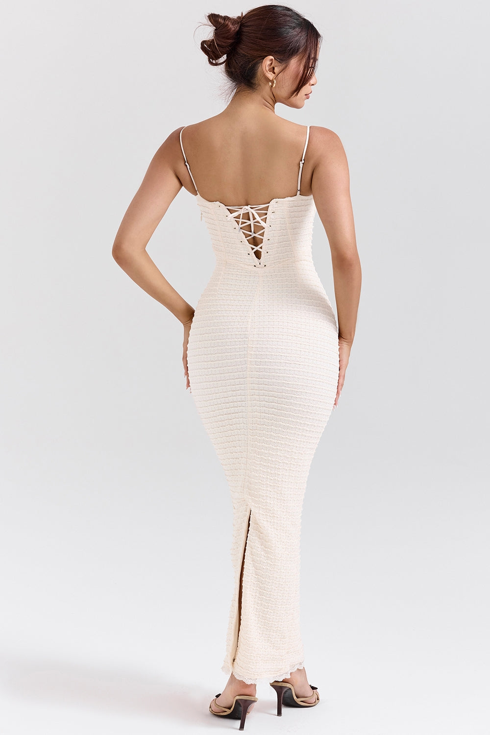 Premium sculpting stretch fabric that hugs the body beautifully while offering comfort and flexibility. The textured finish adds dimension and sophistication, making this dress the perfect choice for bridal showers, civil weddings, elegant dinners, or formal evenings.